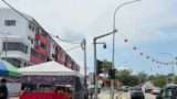 公園の端の方から、道路の照明についているブンガラヤ(ハイビスカス)の飾りが光っているのを初めて見ることができました。(普段、夜は出歩かない夫婦です。)綺麗❗️