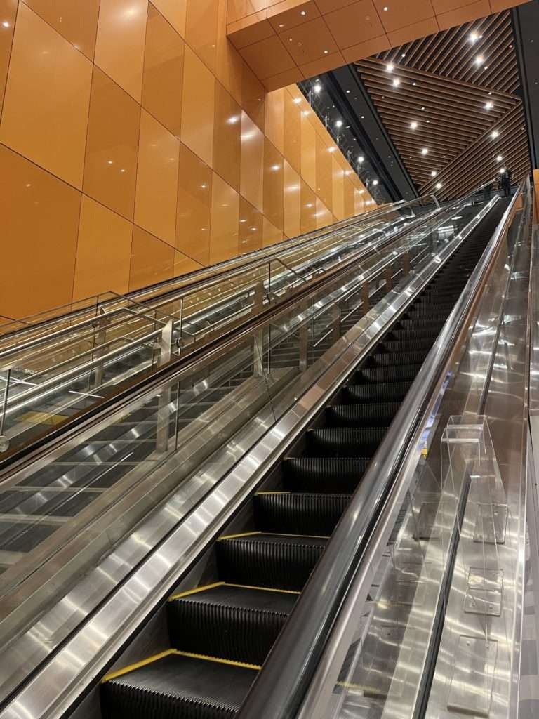 すごく長いエレベーターで、改札口のある階へ登ります。