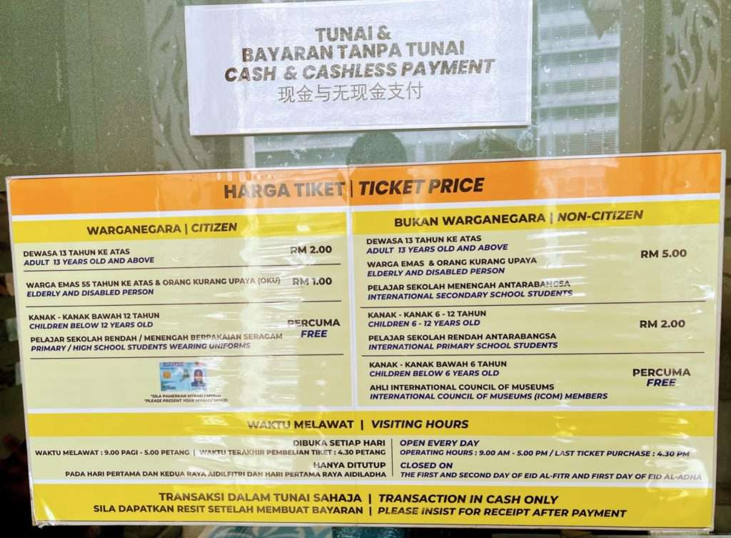 外国人の入場料は、大人5リンギット(約175円)子供2リンギット(約70円)です。