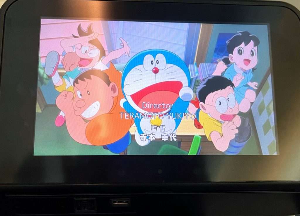 飛行機の中では、ドラえもんを観て楽しみました。(名探偵コナンとかドラえもんとか、ディイズニーとか子供用の映画が好きです。