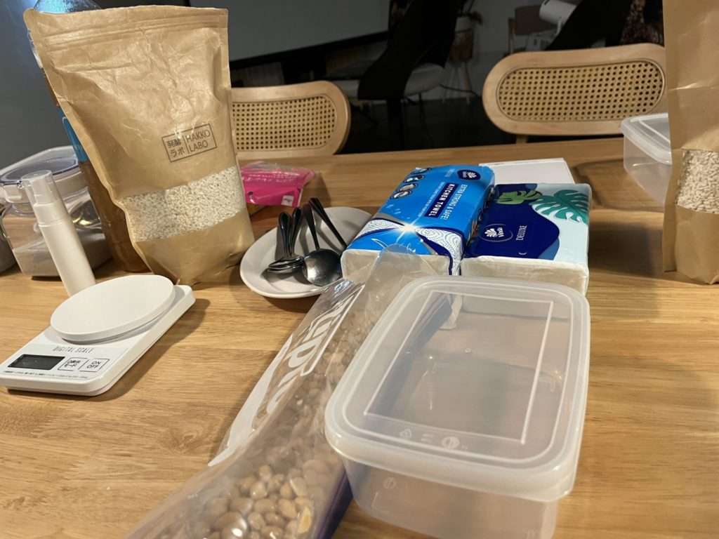 お味噌作りの材料は、初めから全部講師の方が、用意してくださっています。