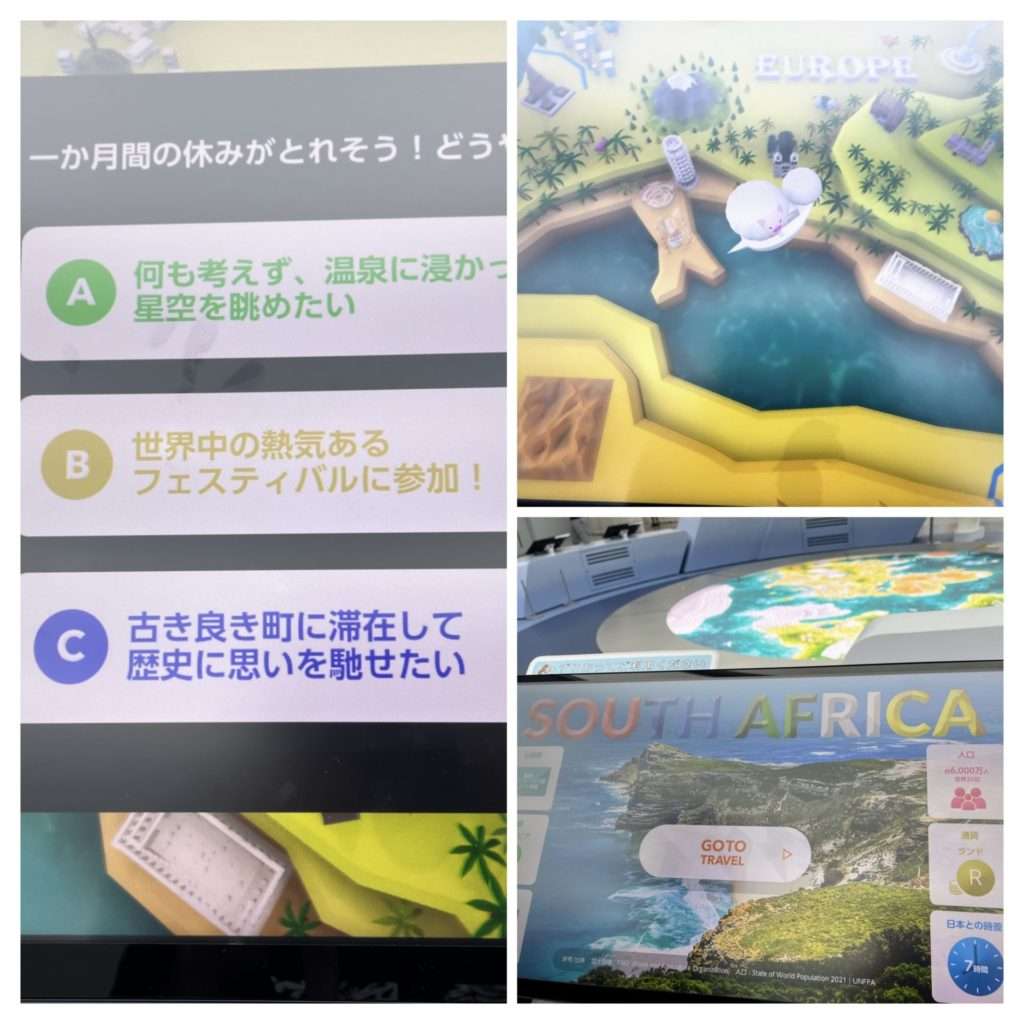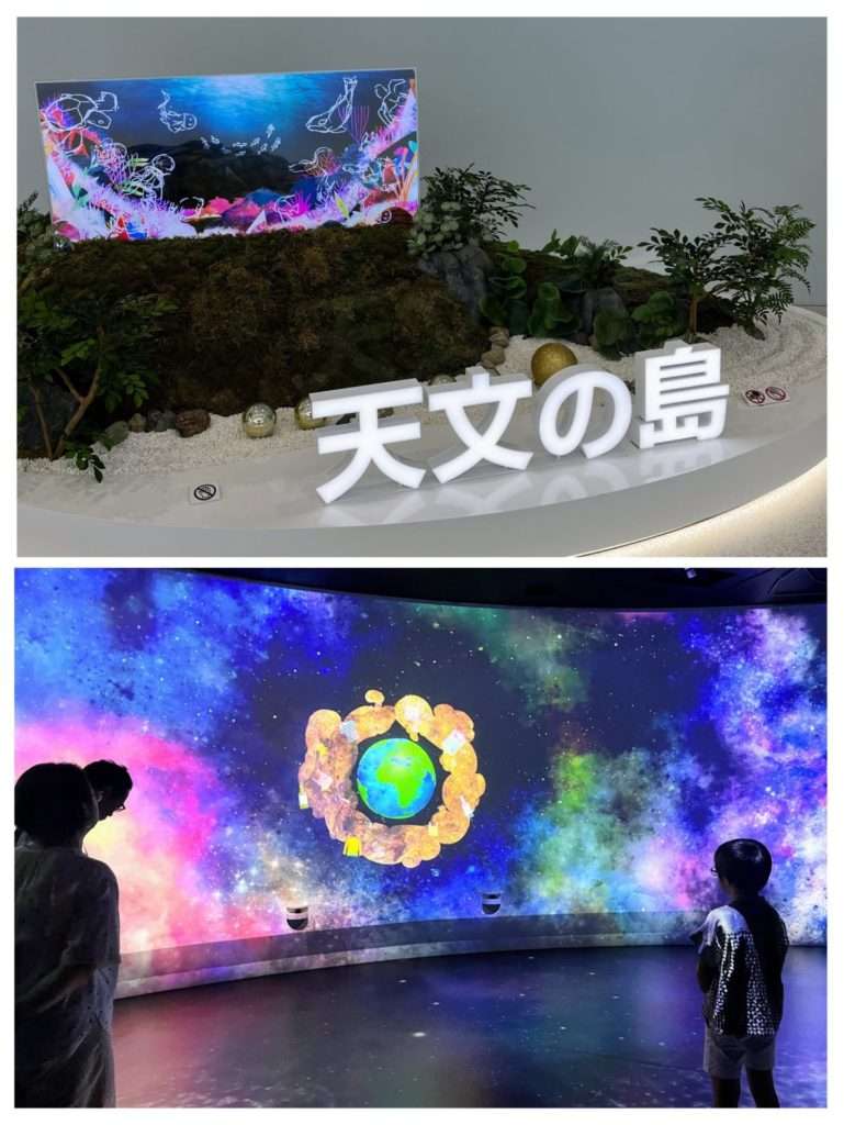 大きな映像を見ながら、地球温暖化や海のマイクロプラスチックに関するものを学ぶことができます。
