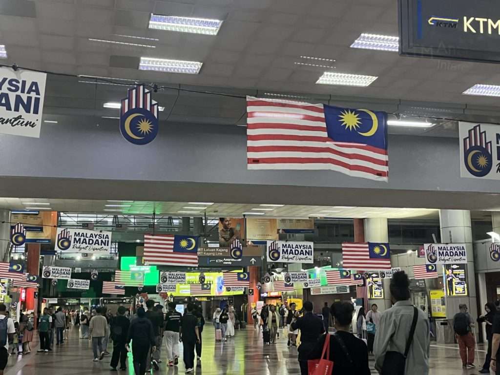 マレーシアの東京駅のようなKLセントラル駅では、マレーシアデーに向けてマレーシアの国旗🇲🇾が飾られています。