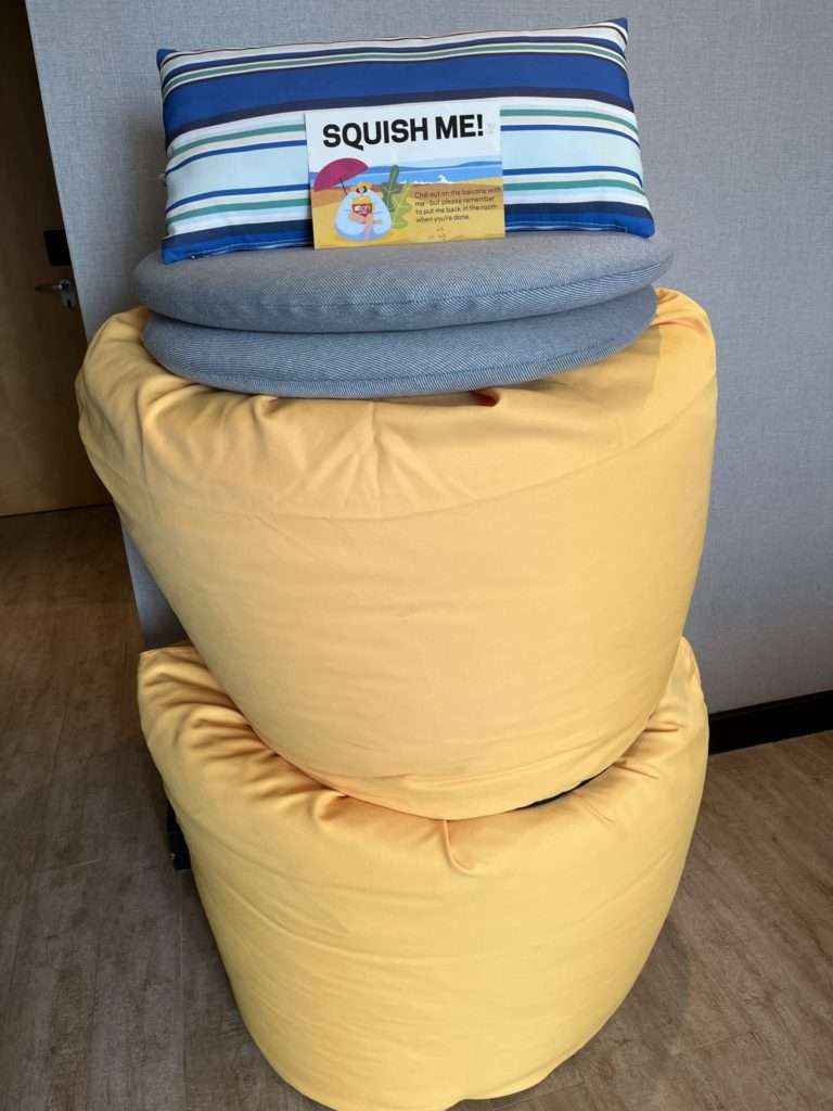 ベランダで使うのかな?お部屋で使うのかな?ヨギボーが、お部屋に置いてあるのも、面白いですね。