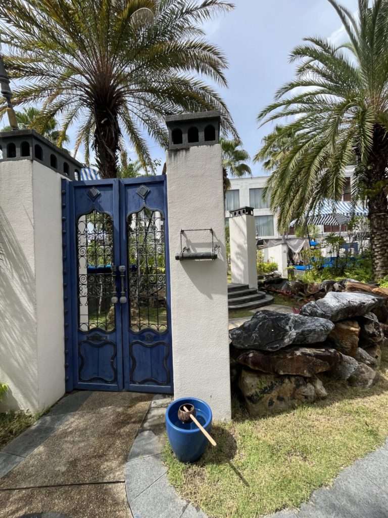 海岸へは、自分の部屋の前の庭から門を開けて行くことができます。