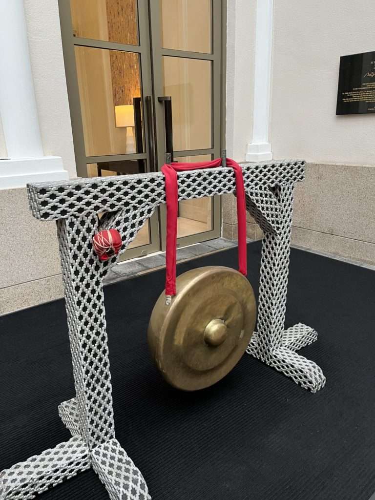 こちらのドラを叩いて、私たちを歓迎してくださいます。