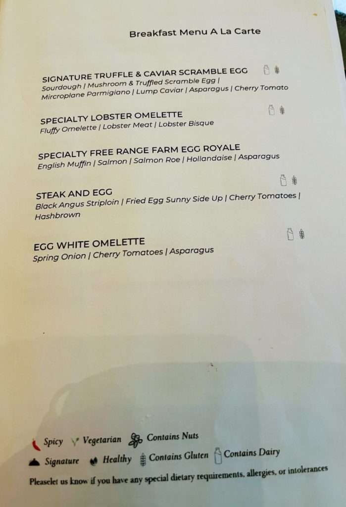 ブッフェスタイルの朝食ですが、アラカルトメニューもあって、そこから好きなものを幾つでも注文できます。