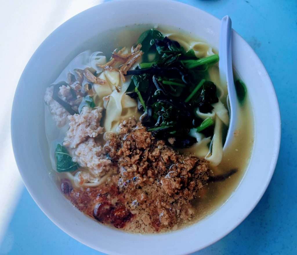 ここのパンミー(Pan Mee 板面)は、豚肉がたっぷり載っています。