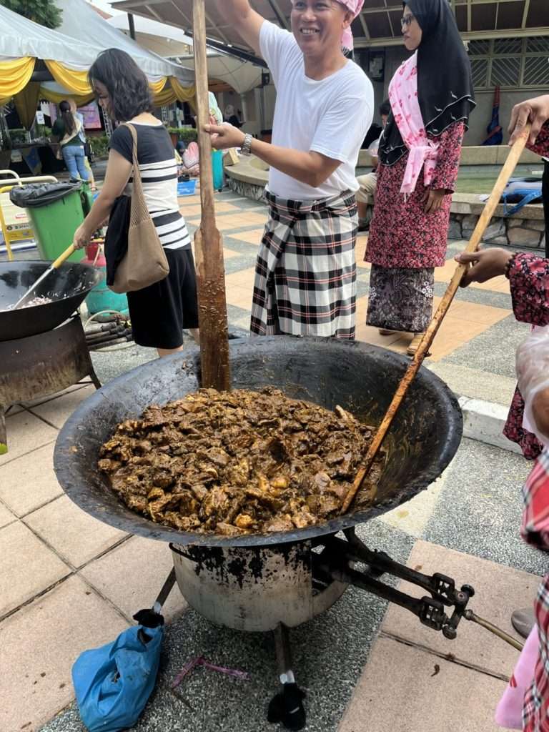 大きなお鍋で作っているのは、牛肉や鶏肉などをココナッツミルクと複数のスパイスで長時間煮込んで作るRendang(ルンダン)でしょうか?