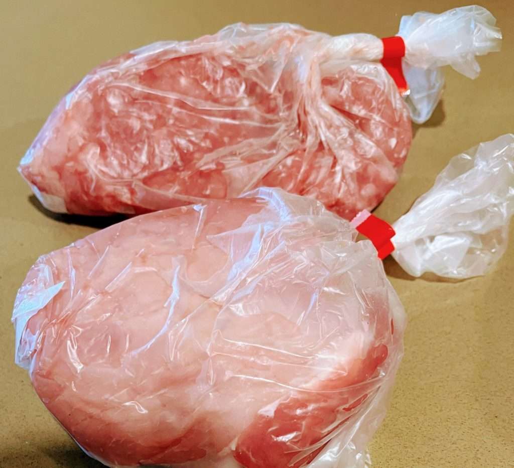 肉屋さんでは、豚肉の赤身の塊肉と赤身のひき肉をそれぞれ300グラムずつ購入しました。