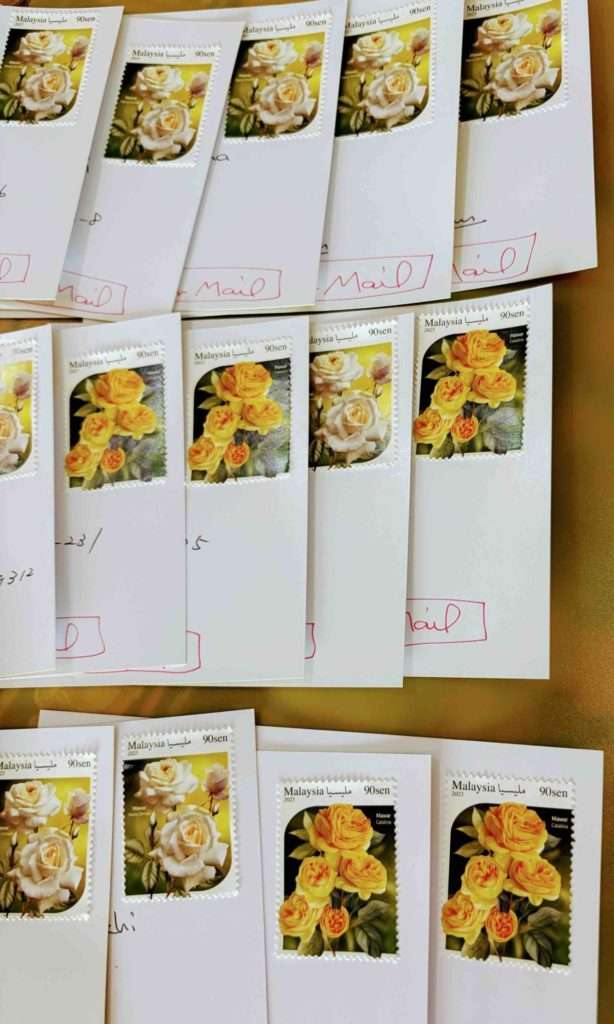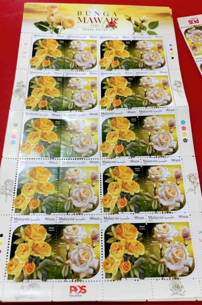 はじめに、POS Malaysia(郵便局)で買った切手は、とっても綺麗なバラ🌹のものでした。(このままシートのまま保存しておきたかったけれど、写真だけ撮って我慢しました。)