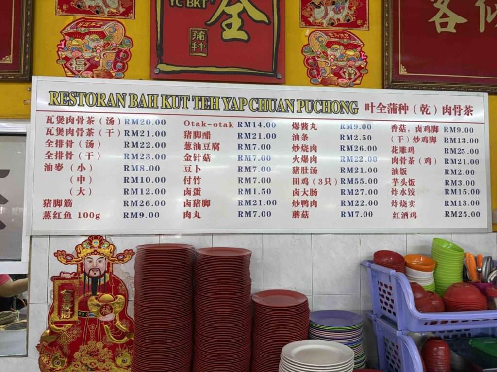 約1年前にYap Chuan Bak Kut Teh Puchongへ行った時の記事は、こちらからどうぞご覧ください。(値段を比べてみると、やはり少し値段が上がっていますね。)