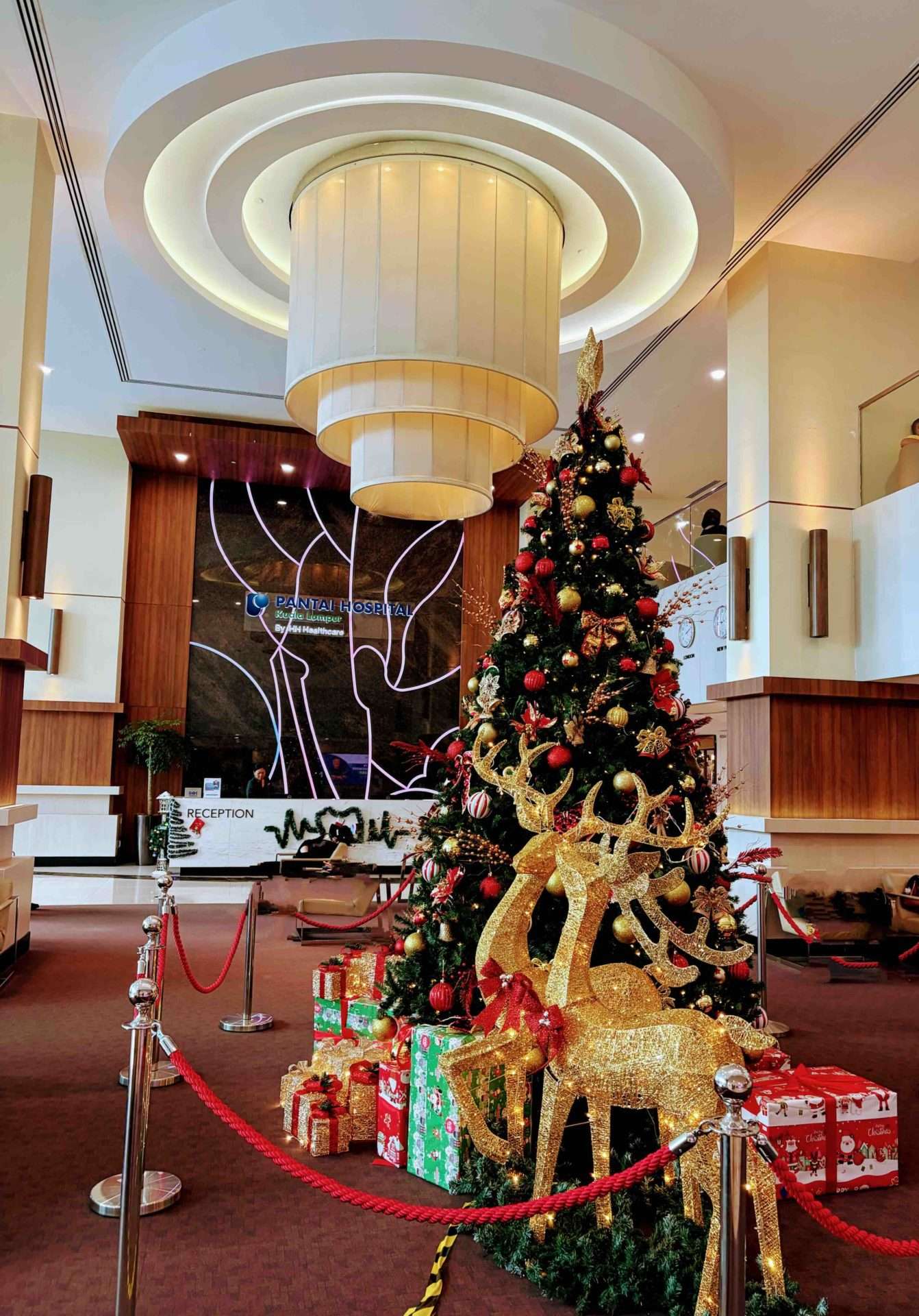 パンタイ病院のロービーには、大きなクリスマスツリーが飾られていました。