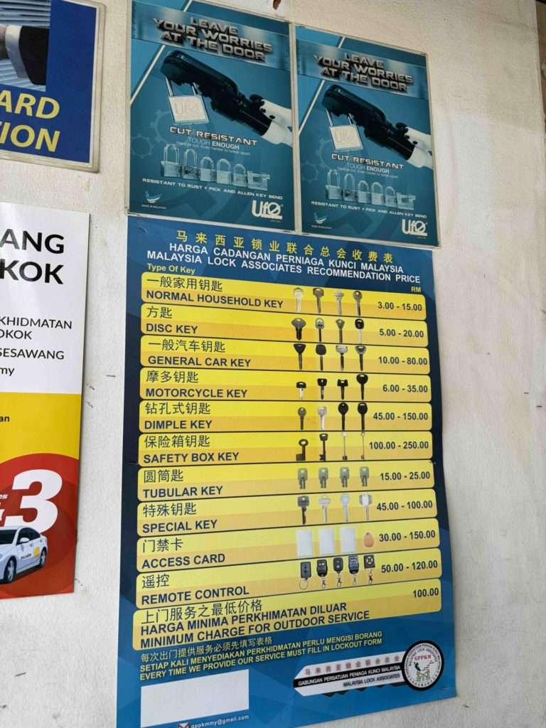 マレーシアの鍵屋さん‼️こんなに安くてお手軽で良いのかなあ😊at バンサー
