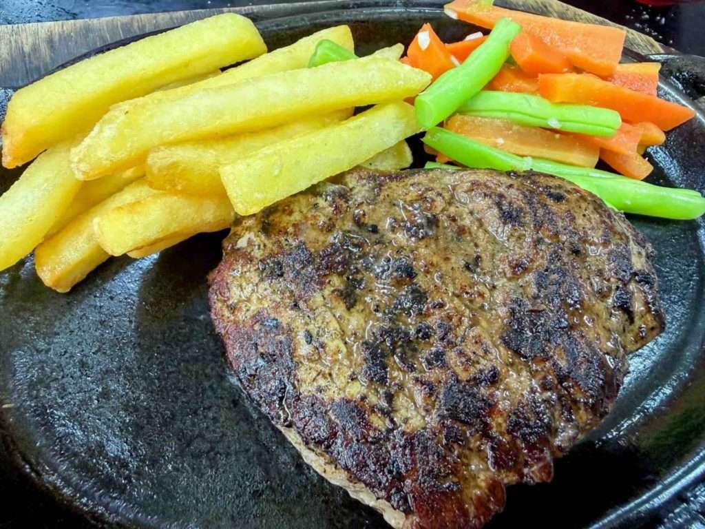 温かいパンが運ばれてきた後に、熱々のステーキがやってきました。