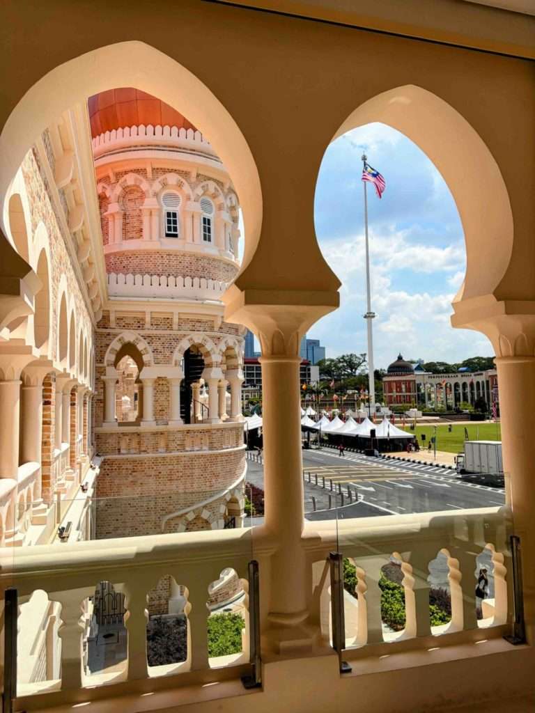 ここからは、ムルデカ広場にあるマレーシアの大きな国旗が見えて、大人気の写真ポイントでした。(人気の写真ポイントでは、写真を撮る人で列ができていました。)